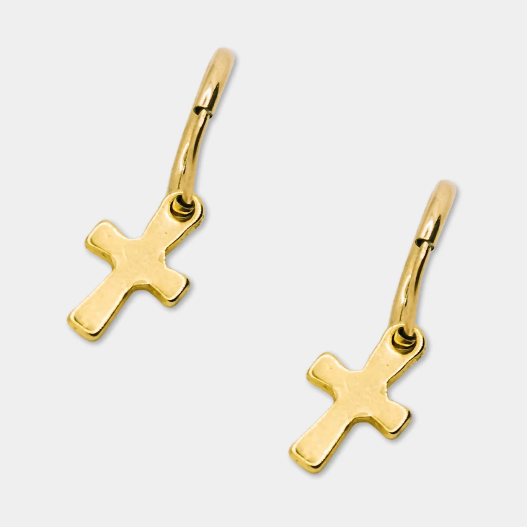 Crucifix Endless Hoop Earrings – Gold | Stainless Steel (Pair)